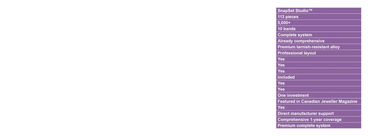 SnapSet Studio is the most comprehensive magnetic ring design system for jewellers who refuse to settle for standard. With 113 precision-crafted prototypes and over 5,000 design combinations, you'll close sales faster, sell bigger, and create experiences your competitors cannot match.